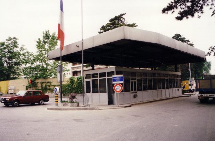 Photographie en couleur du bureau de douane du Pas-de-l'Echelle entre 1974 et 1985. Cette douane dépend de la division d'Annemasse.