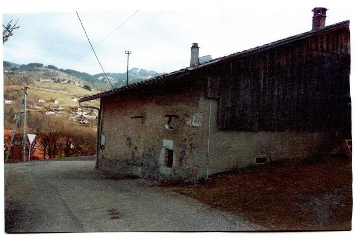 Photographie en couleur représentant une ferme col du Perret, à Bogève. Il s'agit d'une ferme datant de 1653 où étaient installés les taureaux. Les paysans du village amenaient leurs vaches pour faire des veaux avec ces taureaux : les faire saillire.