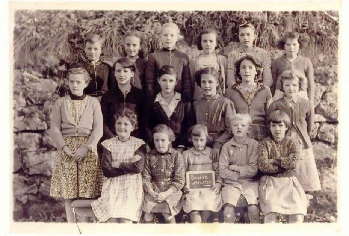 Photographie, en couleurs, représentant la classe de 1954-55 à Bogève.