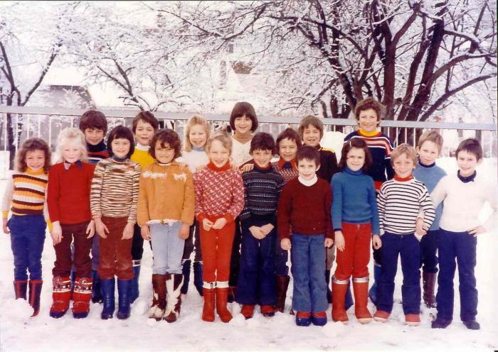 Photographie, en couleurs, représentant la classe de 1978-79 à Bogève. Rangée du haut : Eric BOUVIER, Jérôme CHARDON, Christelle PINGET, Marie Luce BOUVIER, Emmanuel GAL, Stéphane PINGET, Franck CHARDON, Michel BAUD GRASSET, Rangée du bas : Ghislaine BENABDALLAH, Christelle GAVARD COLENNY, Laure CHARDON, Marie France BENABDALLAH, Bruno CHARDON, Michel CHARDON, Didier GOY, Isabelle VIGNY, Olivier GRILLET, Fabrice GOY