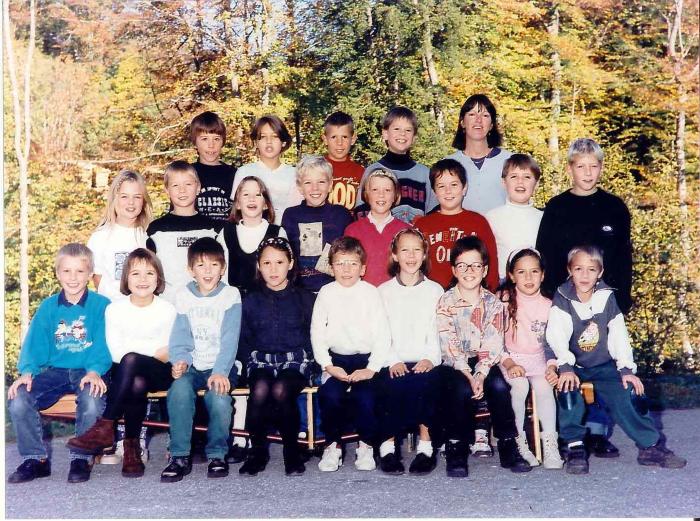 Photographie, en couleurs, représentant la classe de 1995-96 à Bogève.