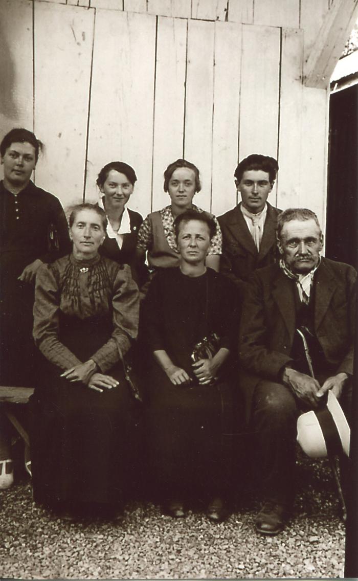 Derrière : Alphonsine CHARDON, Marthe GRILLET, Pierrette BEL et Jean CHARDON ;