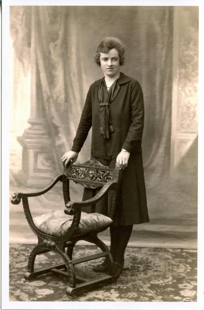 Portrait en noir et blanc, en pied, de Joséphine CHARDON, née « Zozo » FOREL (1910-1932).