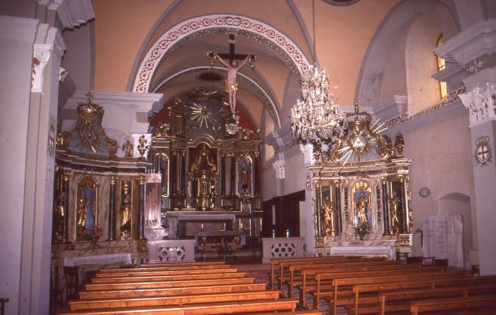 Intérieur et autel de l'église de la Sainte-Trinité des Contamines-Montjoie est une église savoyarde baroque construite en 1759.