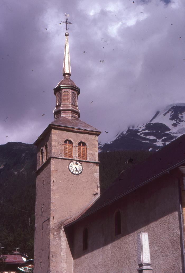 Clocher de l'église de la Sainte-Trinité des Contamines-Montjoie est une église savoyarde baroque construite en 1759.