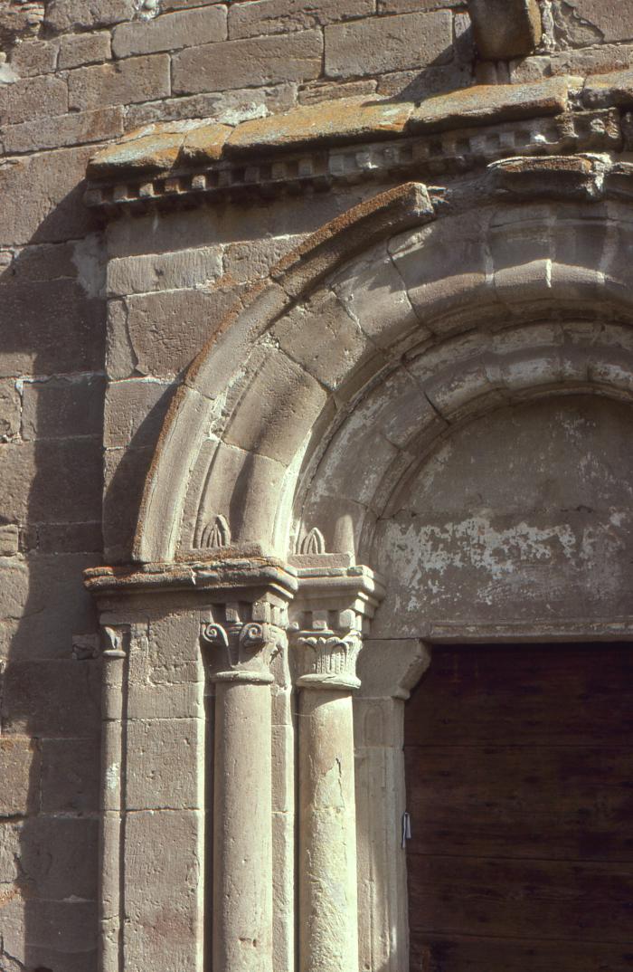 Détail du portail de l'église de Moussy, sur la commune de Cornier. Cette église est de style romano-gothique et date du XIIème siècle