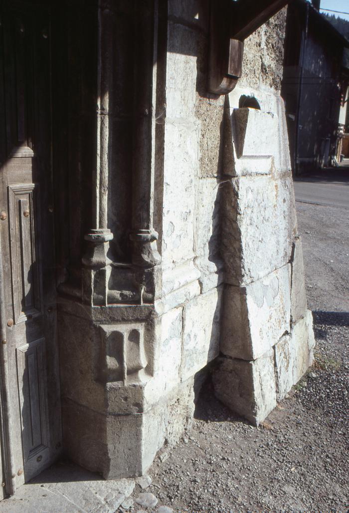 Détail du portail datant sans doute de 1577, à l'église Saint-Christophe à Morillon