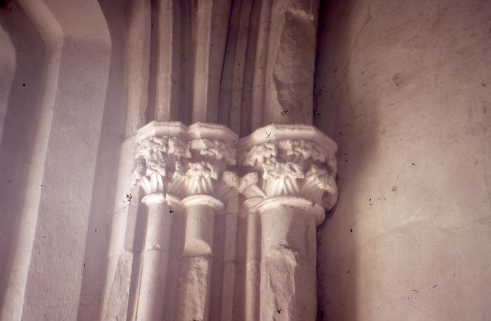 Chapiteau de pilastre à l'intérieur de l'église Sainte-Foy de Contamine-sur-Arve.