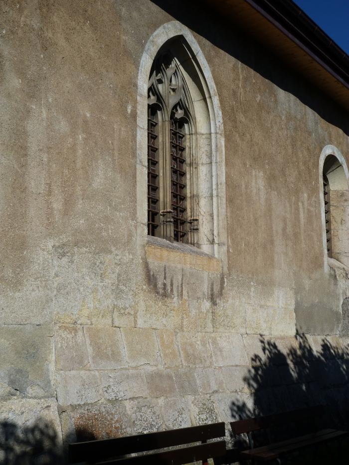 Fenêtre gothique de l'église Saint-Gervais-et-Saint-Protais de Mieussy. Elle est dédiée aux frères jumeaux Gervais et Protais, morts en martyrs . Elle fut construite en dans un style gothique tardif, au XVe siècle.