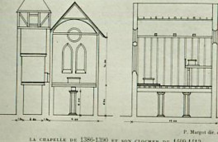 Chapelle du château de Ripaille: élévation et coupe du clocher, par R. MARGOT