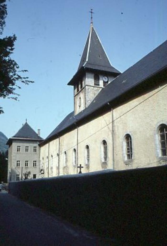 Façade sud-ouest de l'abbaye de Tamié. L'abbaye Notre Dame de Tamié est un monastère cistercien-trappiste situé dans le massif des Bauges à 900 m d'altitude, à proximité du col de Tamié, sur le territoire de la commune de Plancherine. Elle fut fondée en 1132.