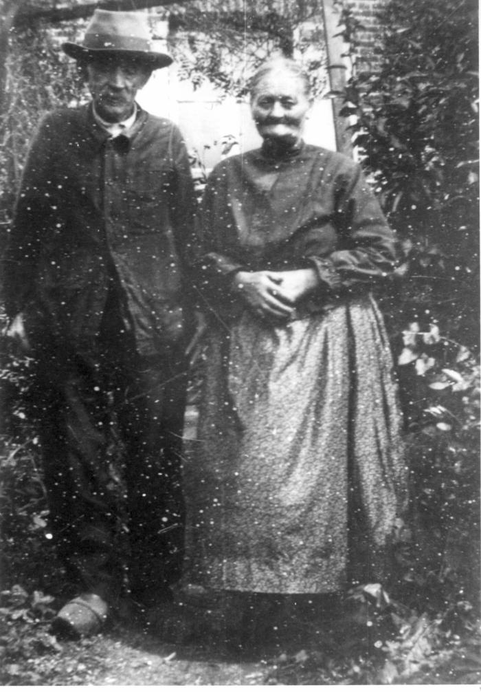 Photographie de Marie VACHAT, soeur d'Émilie, et son époux (tante et oncle d'Eugénie VAUDAUX). La Pesse - Chez Perroux à Habère-Poche. Travail de documentation réalisé par le Gaer, groupe d'action pour l'environnement rural, la qualité de vie, l'animation à Habère Poche.
