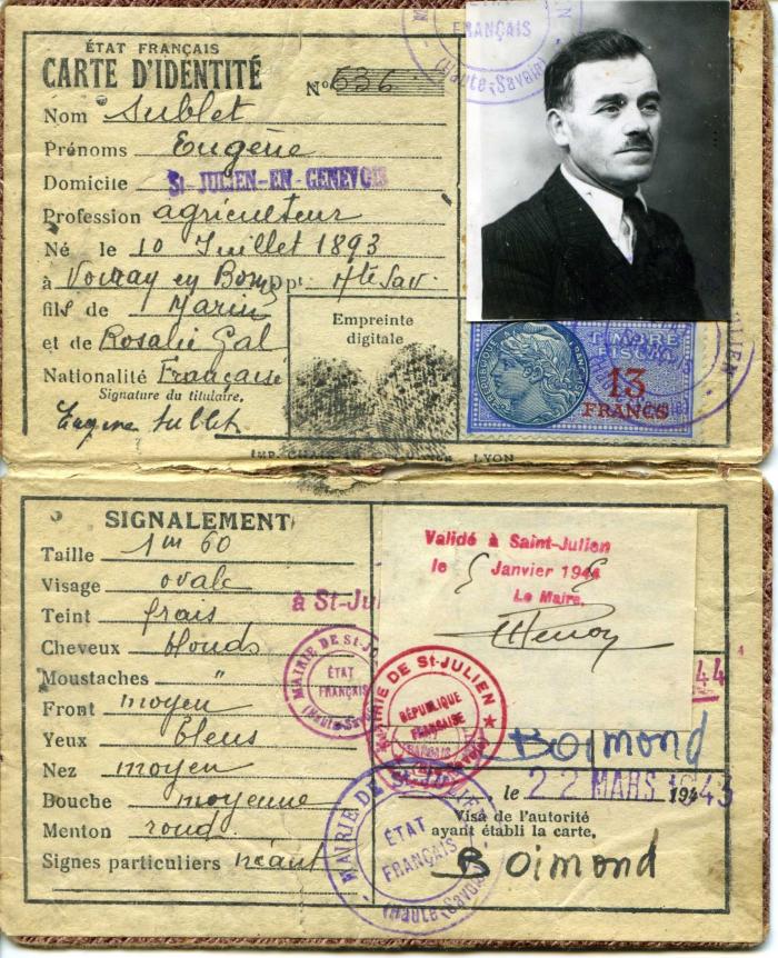 Carte d'identité d'Eugène Sublet, Saint-Julien-en-Genevois (1943)