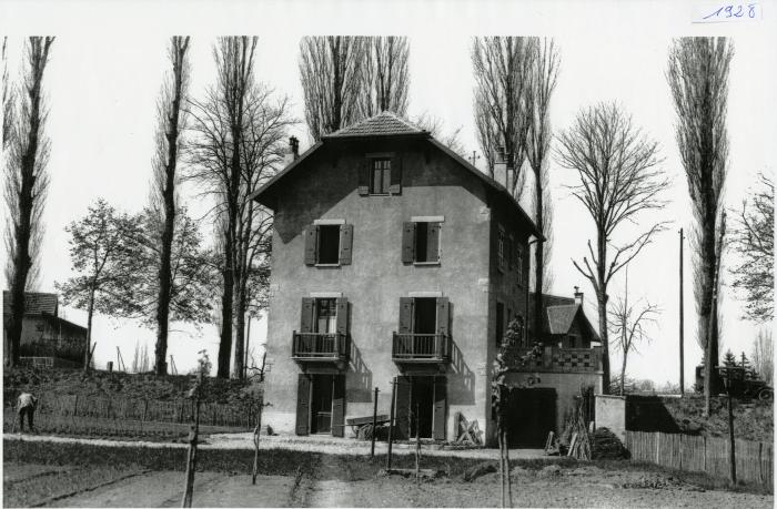 Photographie noir et blanc du garage LECLERC-RICHARDET, anciennement ATRY, à Saint-Julien-en-Genevois? Il s'agirait peut-être du premier site du garage ou de la maison de la famille LECLERC?