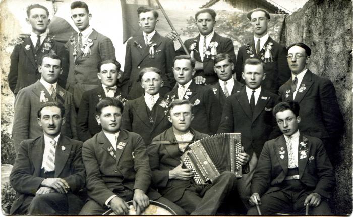 Cette photographie en noir et blanc représente la classe 1930 de Ville-en-Sallaz avec l'oncle de Claudine RANVEL (Edmond DROMPT) au 2ème rang, 2ème en partant de la droite.