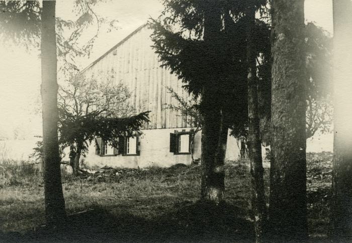 Photographie noir et blanc représentant une vue du chalet du CAF à Bogève, lieu-dit « La Vuagère ».