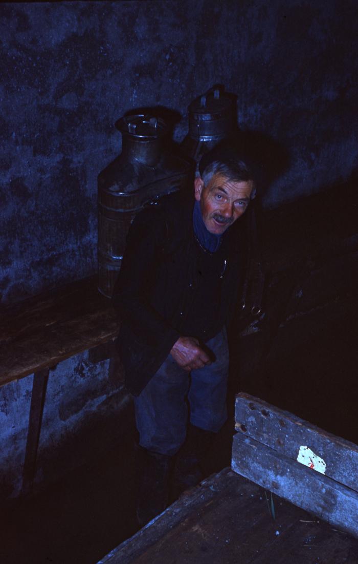 Photographie en couleur représentant le dépôt de lait à la fruitière de Viuz-en-Sallaz par les sociétaires.