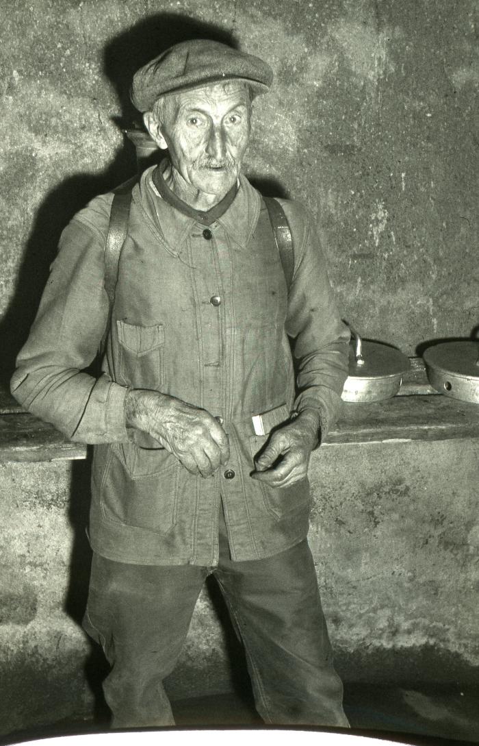 Photographie en noir et blanc représentant le dépôt de lait à la fruitière de Viuz-en-Sallaz par les sociétaires.(Louis Girard)
