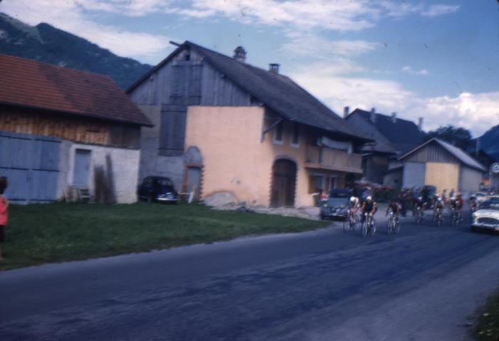 Photographie en couleur représentant le passage du Tour de France à Viuz-en-Sallaz.