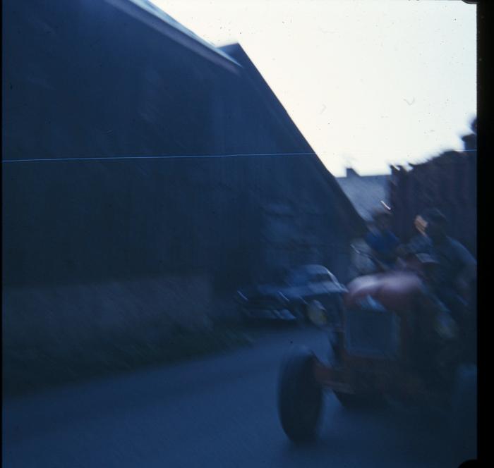 Photographie en couleur représentant un tracteur roulant sur une route à Viuz-en-Sallaz.