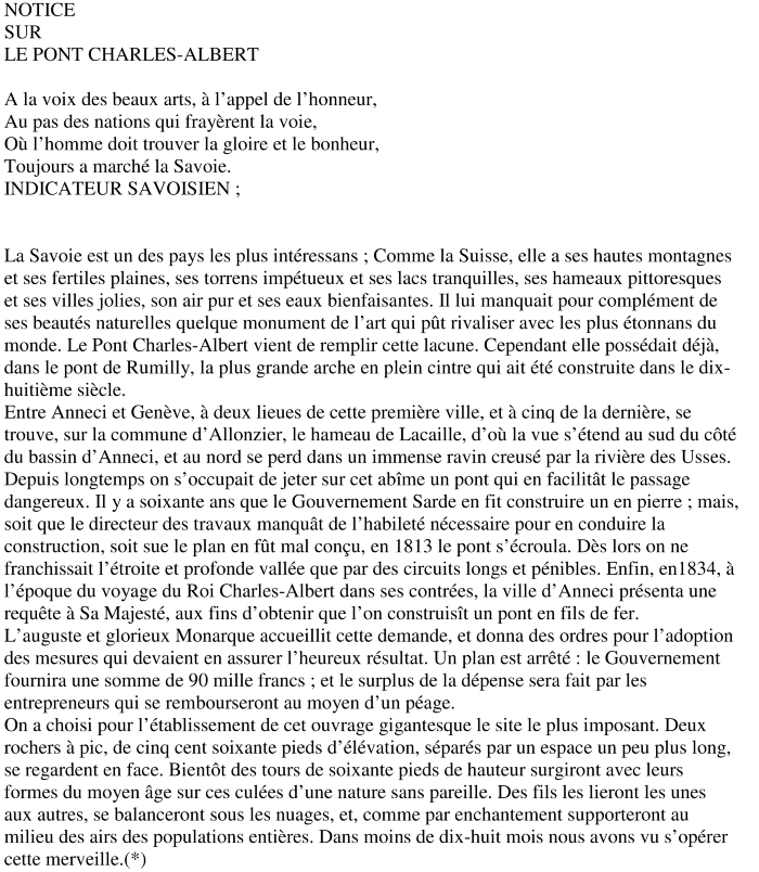 1- Page 1 du texte « Notice sur le pont Charles-Albert ».