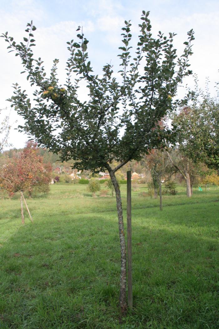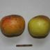 Fruit de grosse taille;épiderme jaune vif recouvert de rouge vif;chair jaune-crème, croquante, juteuse;Très sucrée, relevée et parfumée;pédoncule moyen