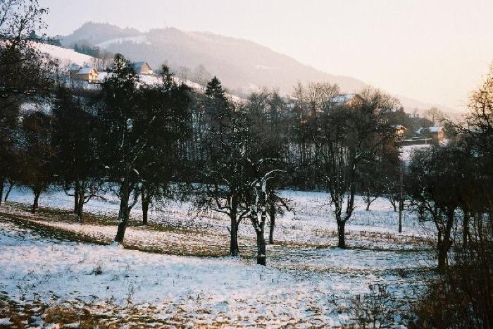 Photographie en couleur représentant un verger, au lieu-dit, Tremplaz, à