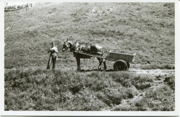 Louis BAUD LAVIGNE et son cheval tirant une charette
