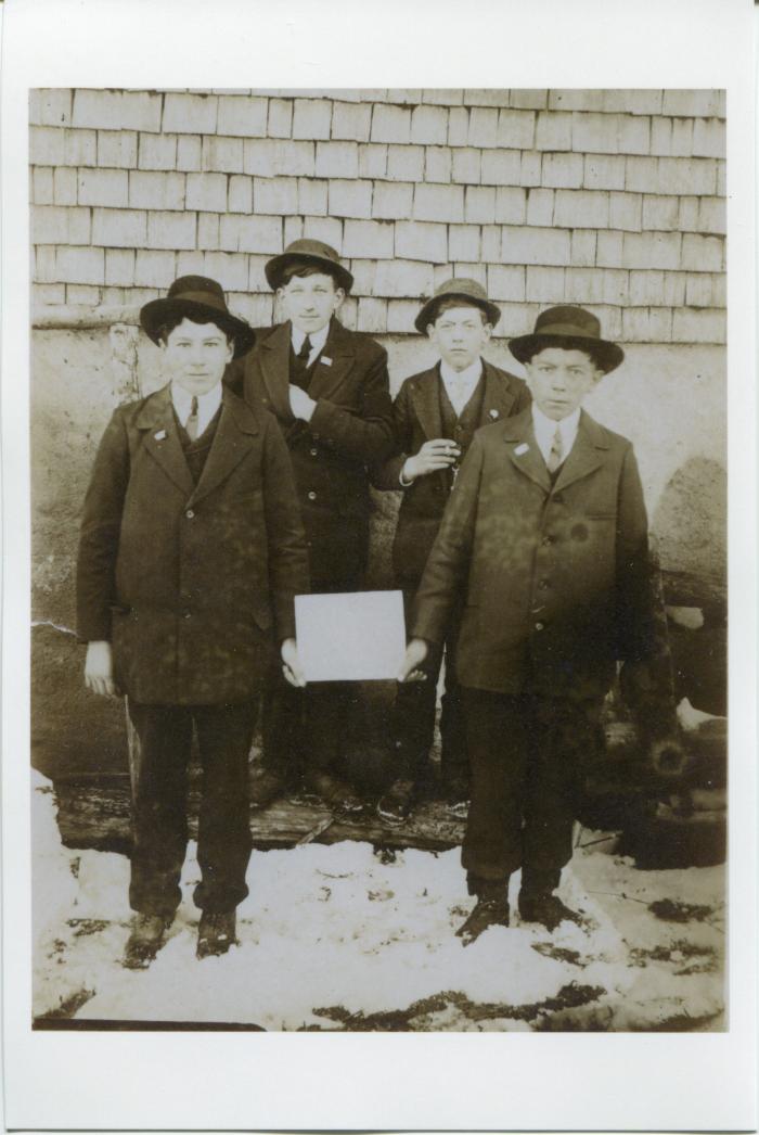 Quatre jeunes hommes de Bogève en chapeau