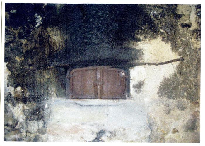 Photographie représentant la porte d'un four banal (utilisé par la communauté) au hameau de l'Ermont à Bellevaux. Chaque famille avait un four bien précis pour faire son pain ou ses pains, pour environ quinze jours. Depuis deux ans, les habitants du village le restaure. Le diaporama montre cette porte ouverte. l'ouverture du four est aussi appelée goule.
