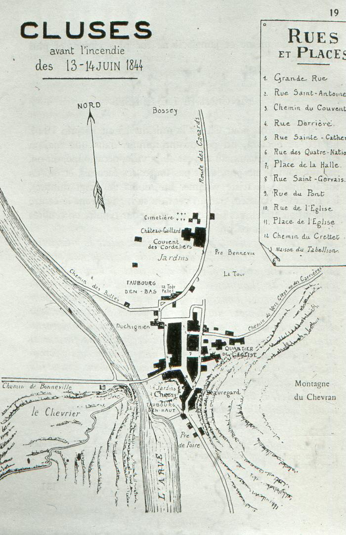 Plan de la ville de Cluses avant l'incendie des 13 et 14 juin 1844