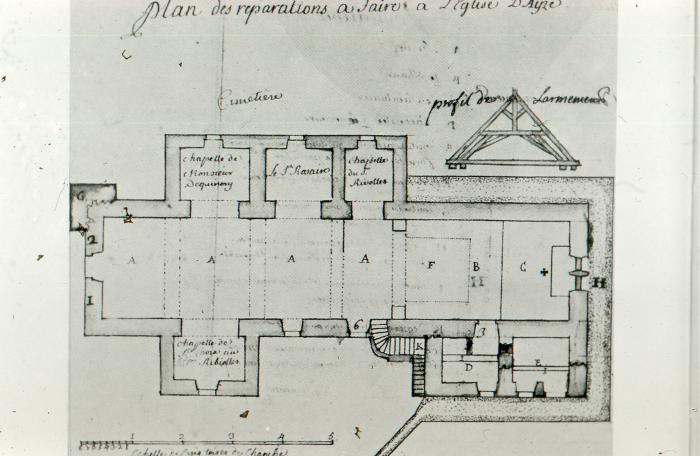Plan des réparations à faire à l'église d'Ayze au XVIIIème siècle. Les premières mentions d'Ayse date du XIe siècle, notamment dans une charte du comte de Genève qui donne cette terre au prieuré de Peillonnex. La paroisse de Ayse serait apparue vers cette période