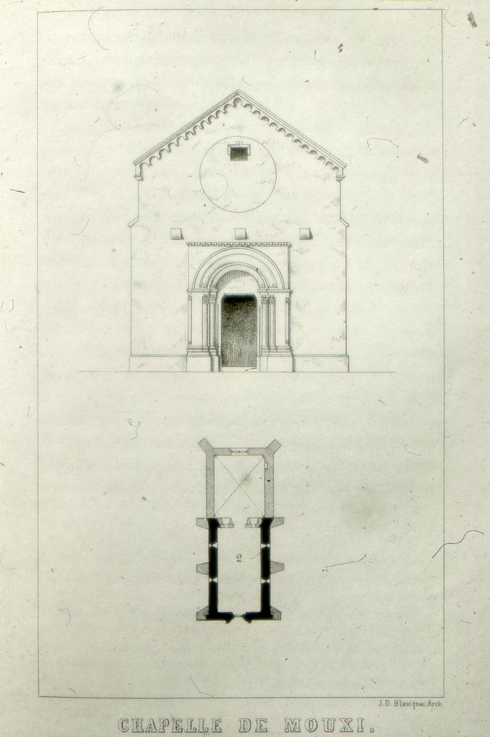 Plan et façade de la chapelle de Moussy, sur la commune de Cornier. BLAVIGNAC