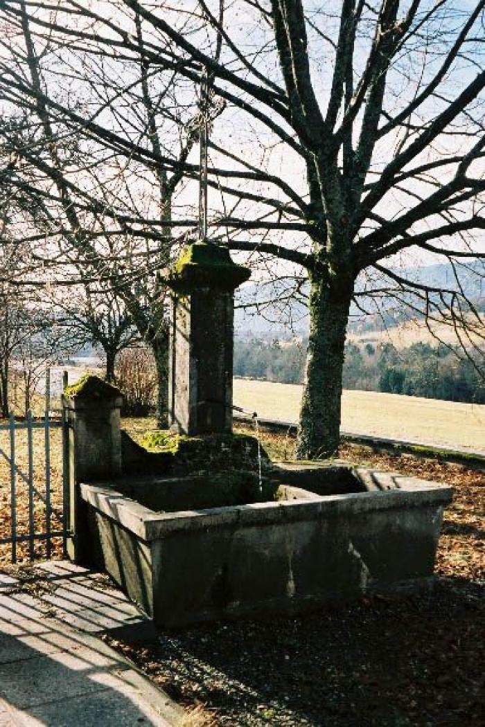 à Habère-lullin. Il s'agit d'un bassin dans une cour, dont la colonne d'arrivée