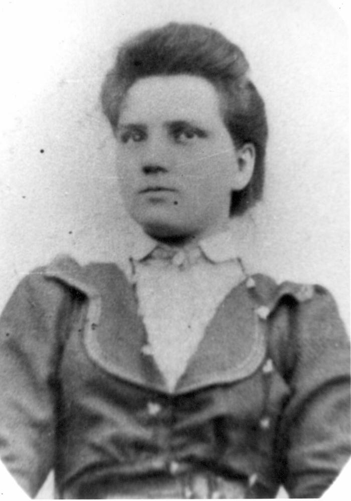 Portrait de Denise BECHEVET, née DEPIERRE, mère d'Henri et de Claudius. Doucy. Habère-Poche. Travail de documentation réalisé par le GAER, Groupe d'Action pour l'Environnement Rural, la qualité de vie, l'animation à Habère Poche.