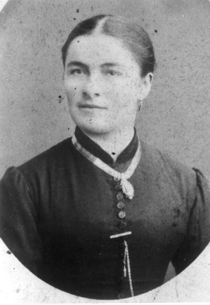 Portrait de Marie VAUDAUX RUTH née MOUCHET de Léonie, belle-mère. Elle porte une robe noire et un bijou autour du cou. Reculfou, Habère-Poche.