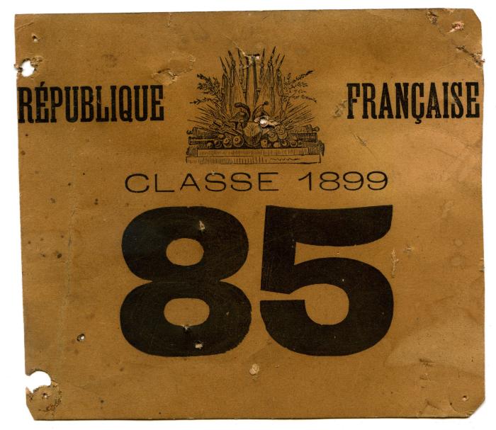 Ce carton représente la classe 1899, numéro 85, commune de Mégevette. Tirage au sort.