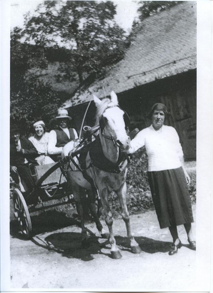 La famille GRANGER en carriole attelée à un cheval à Peillonnex. Ils se tiennent devant la maison familiale.