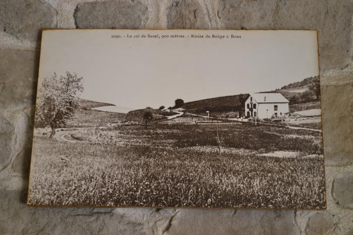 Le café du Col de Saxel en 1905 avant d'être agrandi en 1915 et en 1960.