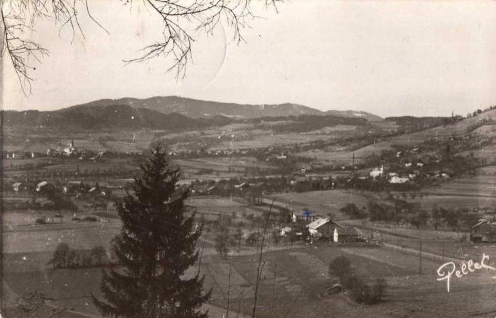 Cette carte postale représente la commune de Ville-en-Sallaz après 1926 (restaurant agrandi).