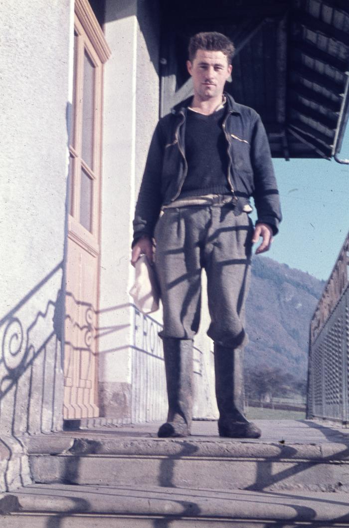 Personne debout sur le balcon de la fruitière de Viuz-en-Sallaz