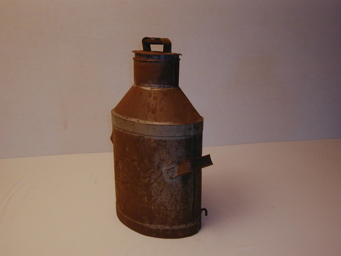 Bidon à lait ou "boille" est un bidon permettant de transporter le lait à la fruitière. On le porte sur le dos comme une hotte, grâce aux deux courroies de cuir. Il manque une sangle à celui-ci.